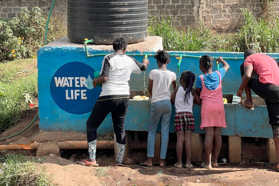 This initiative was sparked by Corina Weikl, a well-known New York tattoo artist and WATERisLIFE board member, who led a fundraising effort with fellow NYC artists. As part of our Gratitude Trips program, they traveled to Kibera and painted a mural with local artists, bringing color and cultural pride to the space.