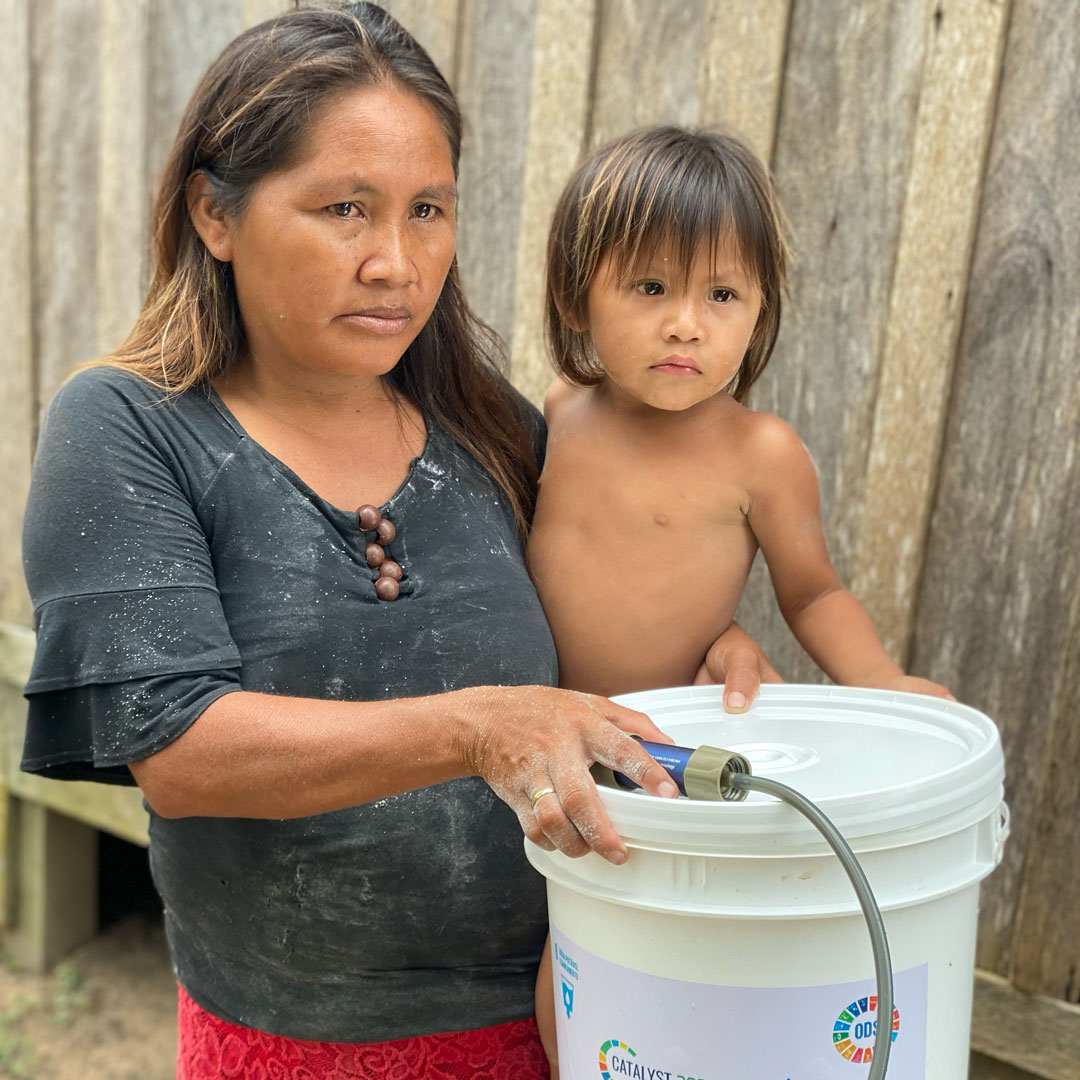 In the first phase, 300 ultrafiltration bucket filters were distributed, providing families with a simple and immediate solution to safely filter river and surface water. A second phase followed, doubling the distribution to a total of 600 families and directly benefiting 2,400 people.